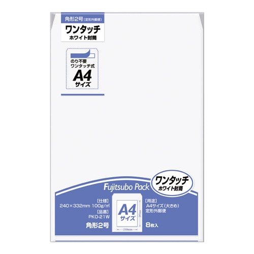 マルアイ ワンタッチ封筒 ホワイト 角2 角形2号 A4 8枚 100g PKO-21W