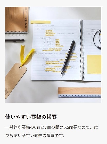 ・罫幅が広すぎず、狭すぎずの定番の"6.5mm"横罫。