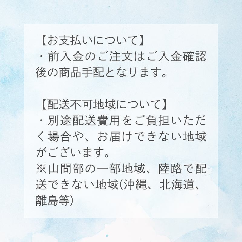 ・前入金のご注文はご入金確認後の商品手配となります。