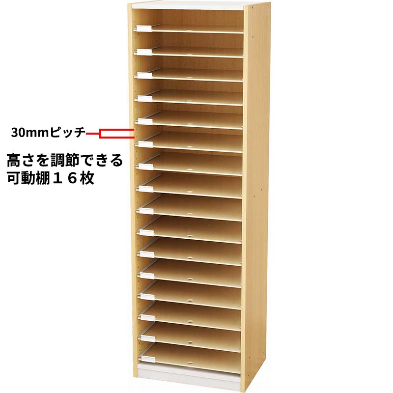 ●棚板枚数:可動棚板/16枚(可動ピッチ30mm)