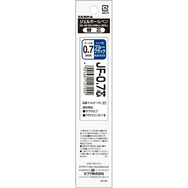 ゼブラ JF-0.7芯 ブルーブラック 1本入 P-RJF7-FB ジェルボールペン替芯 サラサ替芯