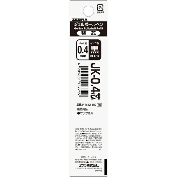 ゼブラ JK-0.4芯 黒 1本入 P-RJK4-BK ジェルボールペン替芯 サラサ替芯