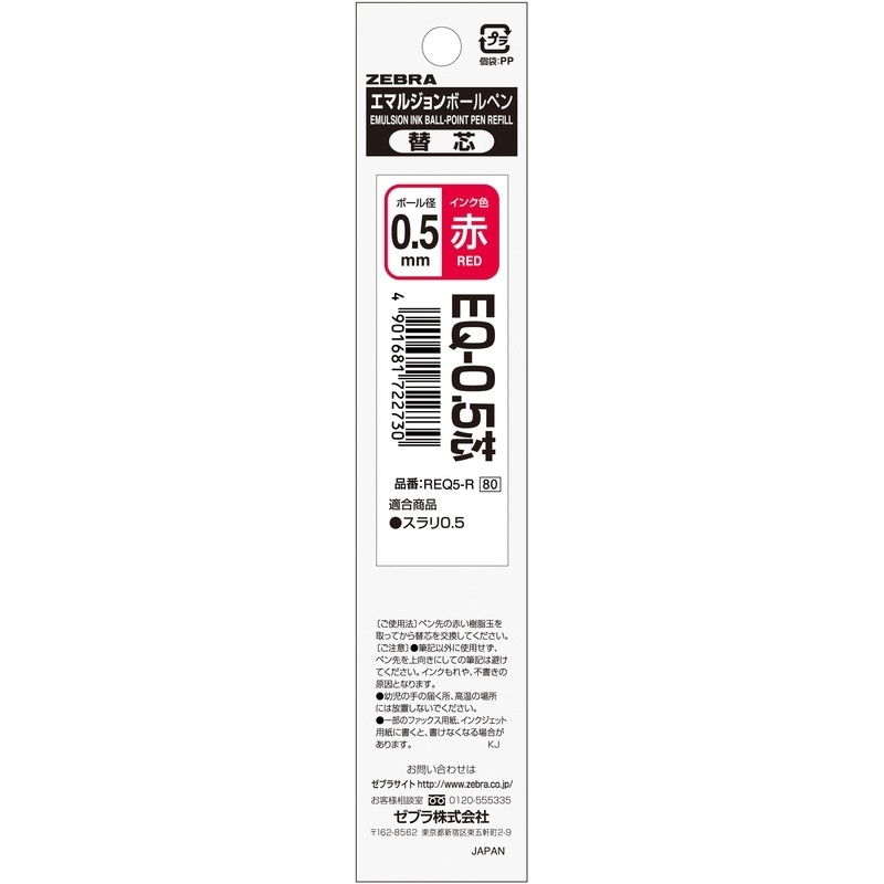 ゼブラ NJK-0.5芯 赤 RNJK5-R ジェルボールペン替芯 サラサ替芯