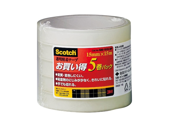 3M 透明粘着テープ 5P 500-1515-5P スリーエム