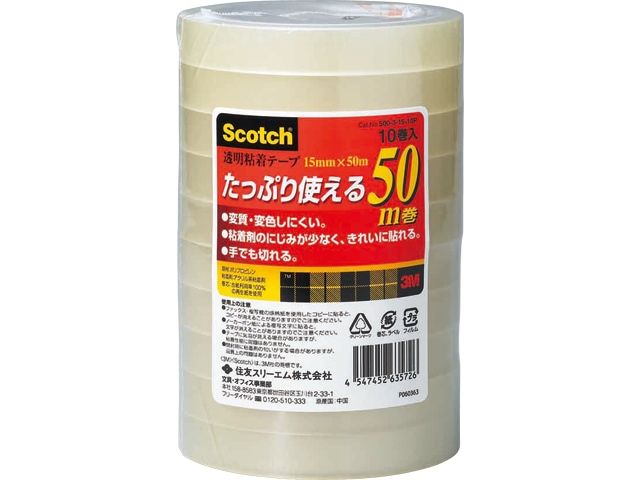 3M 透明粘着テープ 15mm 50m巻 10巻パック 500-3-15-10P スリーエム