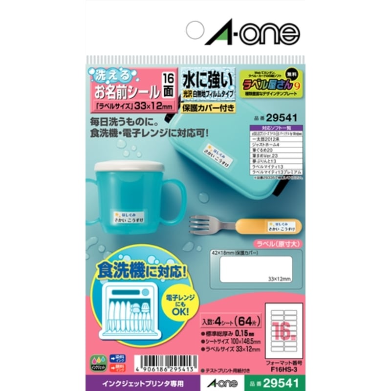 エーワン 洗えるお名前シール 水に強い光沢白無地フィルムタイプ 保護カバー付 はがきサイズ 4シート 多面付 29544 3M おなまえシール