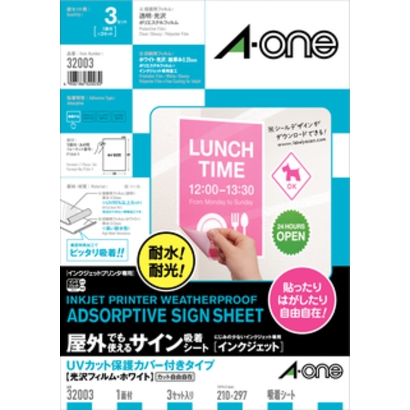 エーワン 屋外でも使えるサイン吸着シート UVカット保護カバー付タイプ インクジェット用 光沢フィルム ホワイト A4サイズ 3セット 1面 ノーカット 32003 3M