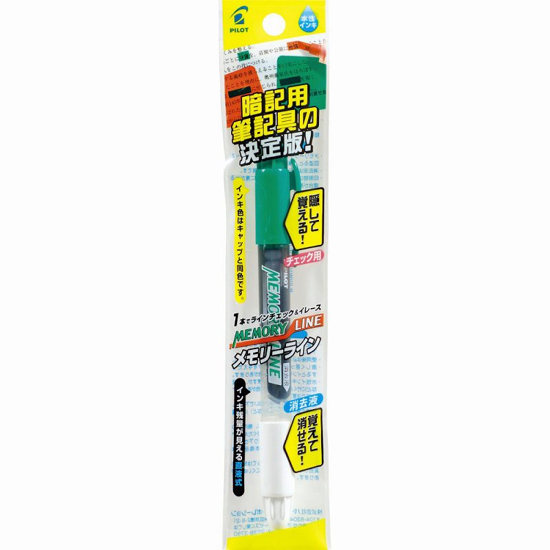 パイロット 水性マーカー メモリーライン 緑+消去液 パック P-SVW15ML-GE 暗記ペン