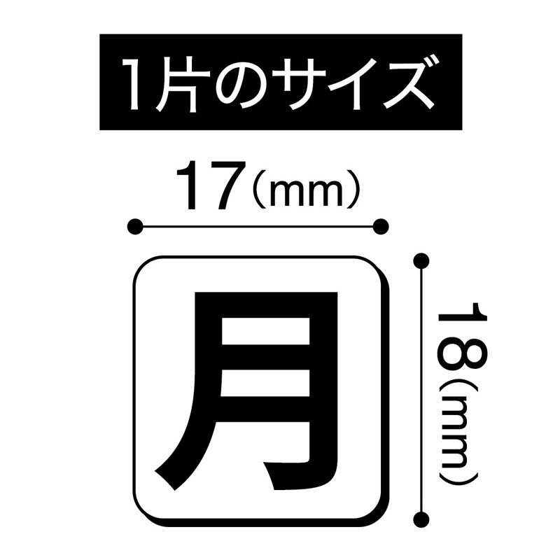 1片サイズ:17×18 月予定表の曜日表示に最適な曜日マグネット