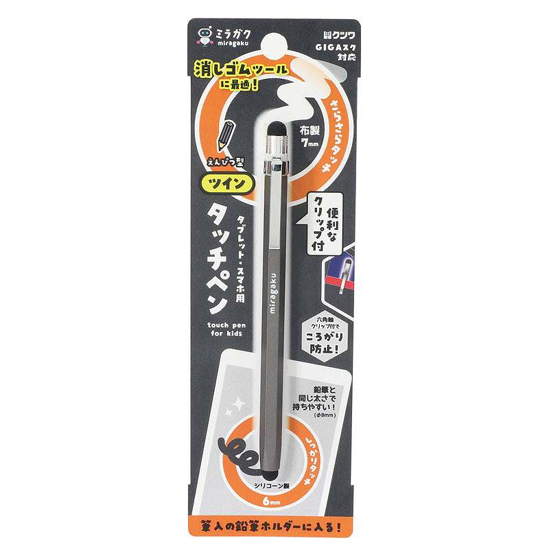 - 素材の異なる2つのペン先がついたツインタッチペン。